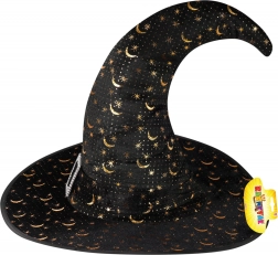 čarodějnický klobouk pro dospělé se zlatými hvězdami a měsícem