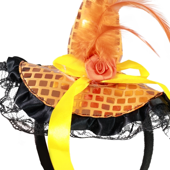 Stylová čelenka s mini kloboučkem v oranžové barvě a s černou krajkou je perfektní volbou na párty, karneval i oslavy čarodějnic nebo Halloweenu. Tento výrazný doplněk dodá vašemu kostýmu šmrnc a podtrhne vaši osobitost. Lehká, pohodlná na nošení a okamžitě nepřehlédnutelná.