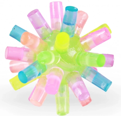 Náš skákací míček s ostny přináší spoustu zábavy a kreativity do každodenní hry. S vibrantními barvami a unikátními ostny zaujme každé dítě a podnítí jeho fantazii. I když nelze vybrat konkrétní druh, celkové balení 24 kusů zaručuje hodiny nezapomenutelné zábavy.