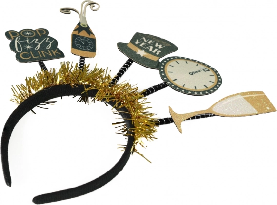 Čelenka přináší do novoročních oslav špetku humoru a originality s nápisy 'Pop Fizz Clink'.