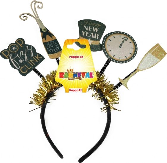 Tato černozlatá čelenka je perfektní ozdobou pro všechny novoroční oslavy a večírky. Je jemně zdobená prvky, které jsou typické pro novoroční atmosféru. Čelenka je určena pro všechny, kdo chtějí přivítat nový rok ve velkém stylu, s hravostí a elegancí.