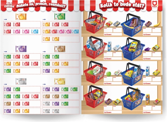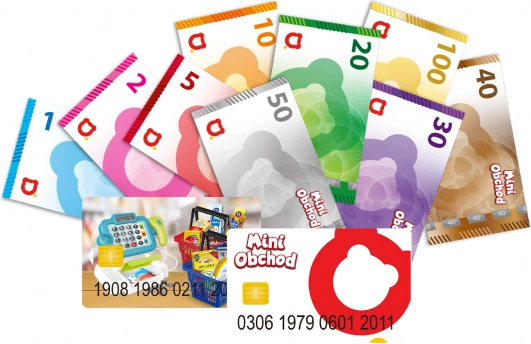 Obsahuje makety bankovek, mincí, platebních karet a další pomocné materiály pro zábavné učení.