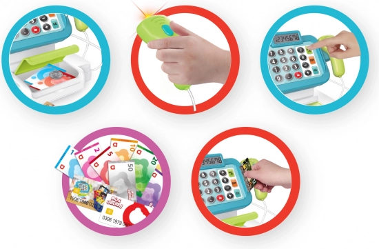 Pokladna obsahuje funkční kalkulačku a světelnou a zvukovou čtečku pro ještě lepší zážitek.