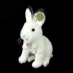 Detailní tvar, hebký bílý plyš a černě zakončené uši dodávají zajíci autentický vzhled, který si zamilujete.