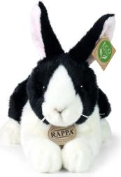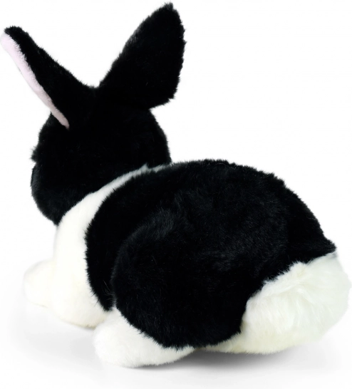 Černo‑bílý králíček působí jako živý a láká k mazlení díky extra jemnému materiálu.