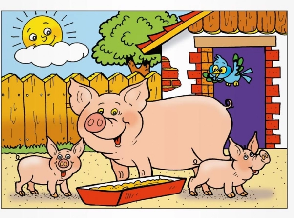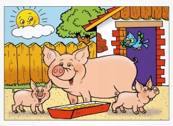 - 8 (kočka a koťátka, ovečka, pes, prasátka, kohout a slepičky, koník a hříbátka, kráva s telátkem, husa)