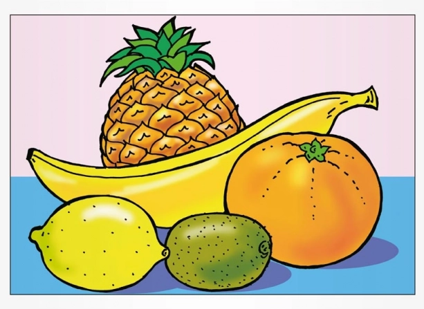 Součástí jsou oblíbené motivy jako jahody, rybíz, maliny, borůvky, ananas, banán, pomeranč, meloun, hrozny i zelenina (salát, okurka, paprika, dýně, lilek, cibule aj.). Praktický formát A5 se vejde do batůžku i na cesty.