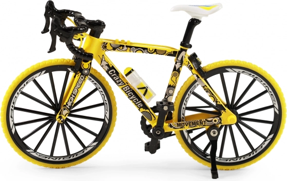Miniaturní žluté horské kolo je skvělou volbou pro děti, které milují akci a pohyb, i pro dospělé sběratele. Díky volnému chodu kol se snadno rozjede a plynule jede po rovném povrchu. Realistické provedení vynikne na poličce i při hraní.