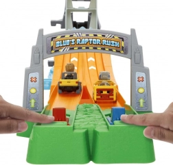 Hot Wheels Jurský svět závodní dráha vás přenese do prostředí plného rychlosti a vzrušení. Tento set zahrnuje: