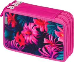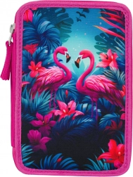 Třípatrový školní penál s motivem plameňáků nabízí extra prostornost, ideální pro uspořádání všech psacích potřeb. Je vybaven gumičkami pro silné pastelky a fixy a spolehlivými zipy YKK.