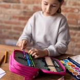 Penál je vybaven elastickými gumičkami, které pojmou i silnější pastelky a fixy, přičemž všechny psací potřeby zůstanou bezpečně na svém místě.