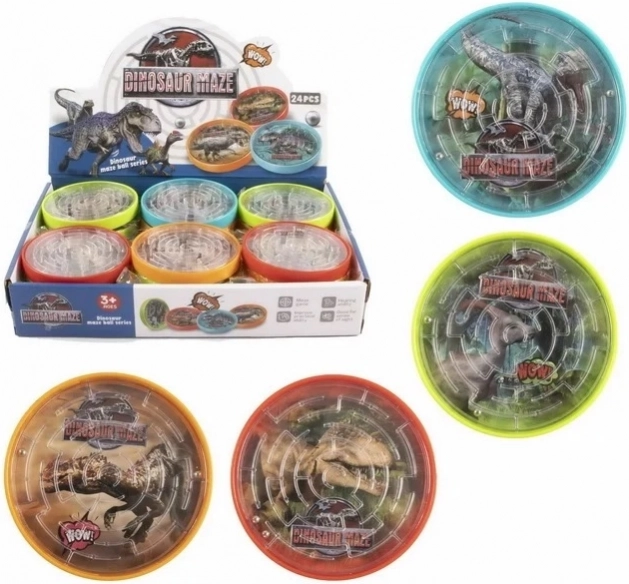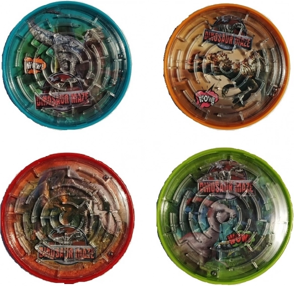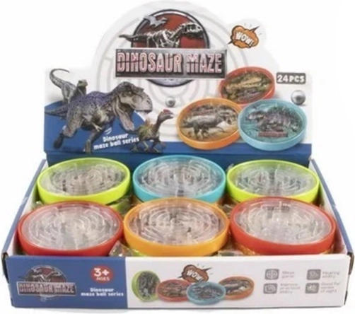 Tato hračka je ideální pro děti, které milují výzvy a dinosaury. Kuličkový labyrint Dinosauři je k dispozici ve čtyřech různých druzích, přičemž každý má průměr 9 cm.