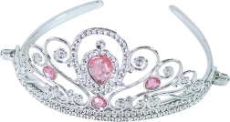 Krásná korunka s růžovými kameny a detaily z jemného kovu je lehká a pohodlně sedí na hlavě všech princezen.