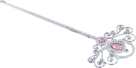 Tato sada obsahuje stříbrnou korunku a dekorativní hůlku, ideální pro malé princezny, které milují pohádkové příběhy.