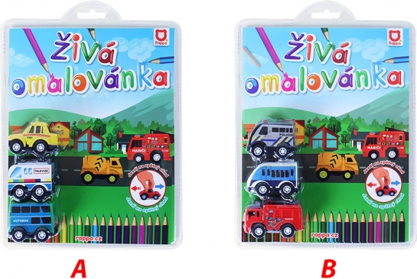 Objevte unikátní sadu autíček s omalovánkami, které můžete vybarvit podle své fantazie. Set obsahuje 3 mini autíčka na zpětný chod a omalovánky s motivy aut.