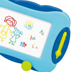Tato magnetická kreslicí tabulka je ideální pomůckou pro malé umělce. Díky přiložené magnetické tužce mohou děti bezpečně a bez inkoustu či pastelek kreslit dle vlastní fantazie. Přesunem posuvné gumy snadno a rychle smažete obrázky a tabulka je okamžitě připravena na nové nápady.
