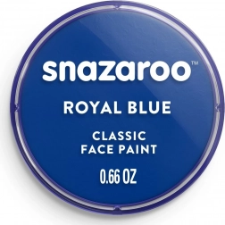 Profesionální barva na obličej a tělo Snazaroo v odstínu královská modrá nabízí dlouhotrvající, jasné a syté krytí. Snadno se aplikuje štětcem nebo houbičkou, je bezpečná a netoxická, vhodná i pro citlivou pokožku a snadno omyvatelná vodou a mýdlem.