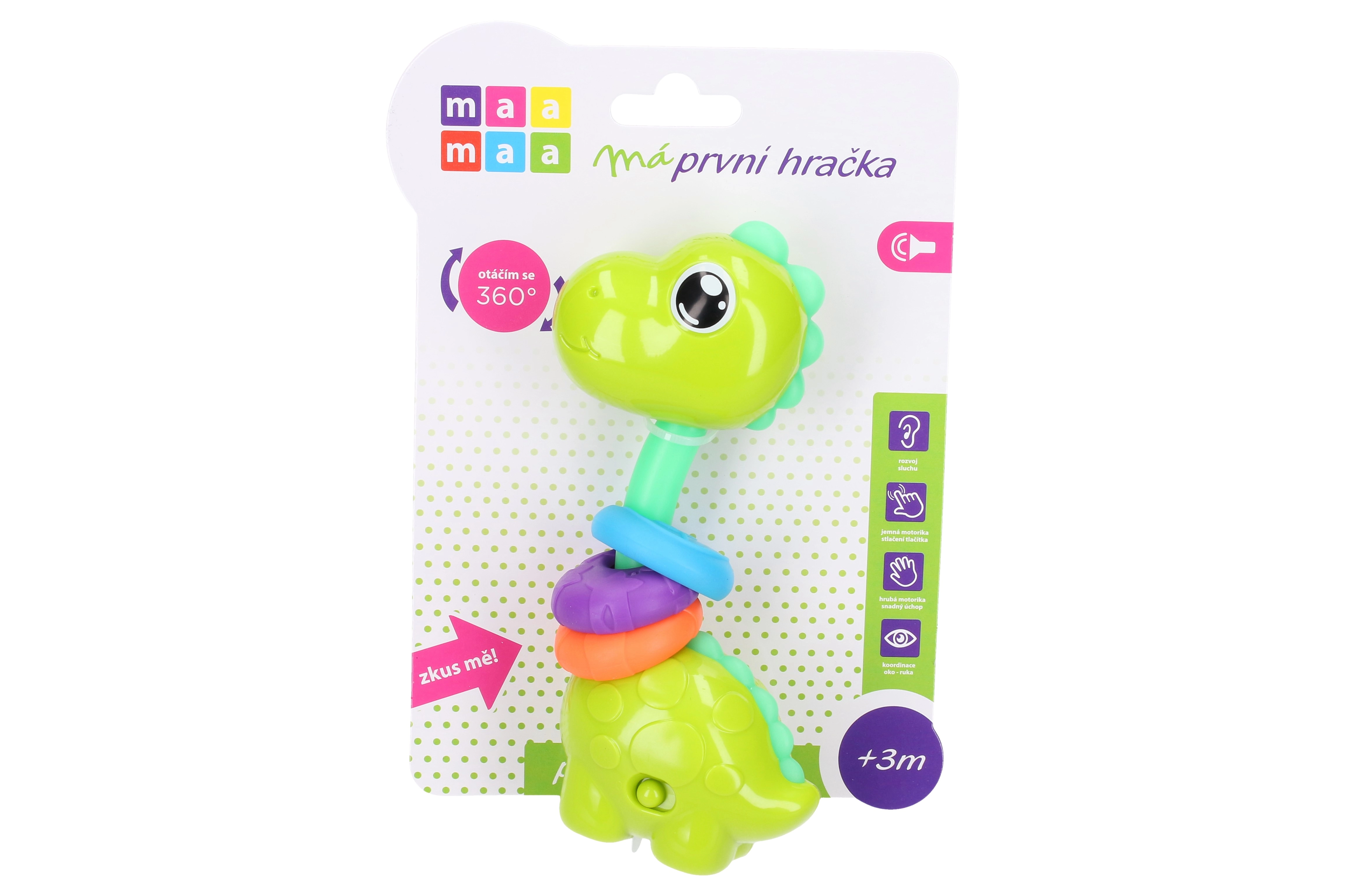 Maamaa Dino s efekty je perfektní hračka, která zaujme světelnými a zvukovými efekty, aktivovanými stlačením hlavy dolů.