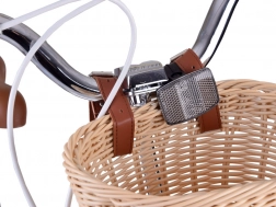 Proutěný košík na řídítkách je ideální pro drobnosti na cesty, zatímco kovové blatníky v retro stylu a kryt řetězu chrání před špínou a cákanci.