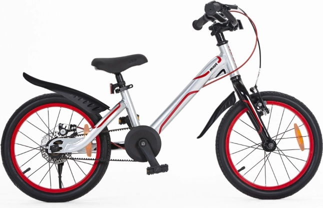 Na bezpečí dětí myslí přední čelisťová a zadní kotoučová brzda s ergonomickými pákami pro malé ruce a kompletní sada odrazek (vpředu, vzadu a ve výpletech kol). Ergonomická řídítka s měkkými gripy a krátkým představcem zvyšují jistotu ovládání, pohodlné výškově nastavitelné sedlo roste s dětmi. V základní výbavě nechybí blatníky, zvonek ani stojánek. Kolo je z 90 % smontované, v balení najdete i potřebné nářadí pro rychlé dokončení.