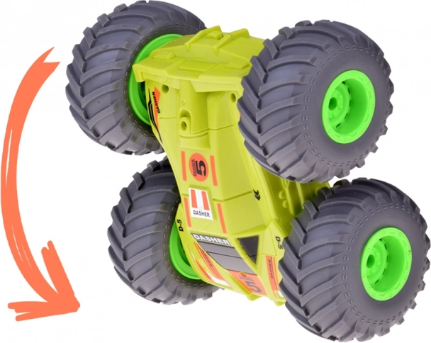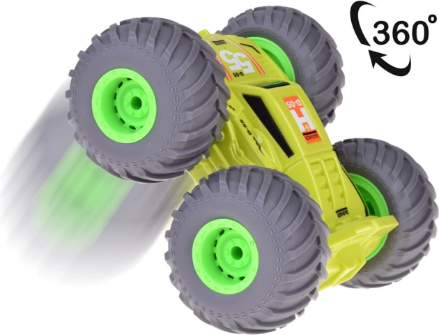 Toto akrobatické dálkově ovládané auto je navržené pro maximální zábavu na různých površích. Robustní konstrukce a velká terénní kola umožňují plynulý přechod z jízdy do piruet a zpět, zatímco oboustranná karoserie udrží hru v chodu i po pádu či převrácení.