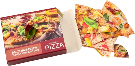 Pizza rozdělená na 4 díly a přiložené rádýlko dávají dětem pocit skutečného krájení a servírování. Skvělý základ pro hru na pizzerii.