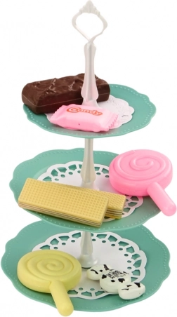 Elegantní tyrkysová patera se třemi patry umožní krásně vystavit všechny dezerty a dodá hře kouzlo skutečné cukrárny.