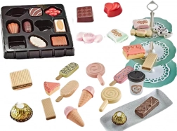 Tato bohatá sada pro malé milovníky sladkostí nabízí vše potřebné pro otevření vlastní mini cukrárny. Děti si mohou servírovat dezerty, aranžovat je na elegantní třípatrové míse a „vařit“ kávu pro hosty. Realistický vzhled dílů a příjemná paleta barev podporují kreativitu, rolové hry i jemnou motoriku.