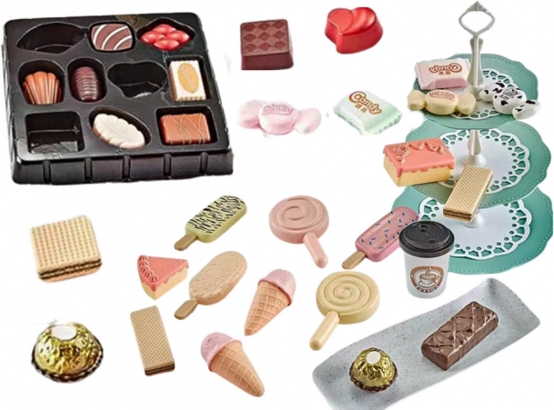 - Realistické detaily: makronky, sušenky, lízátka, dezerty, pralinky, wafle, tyčinky a více.