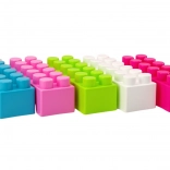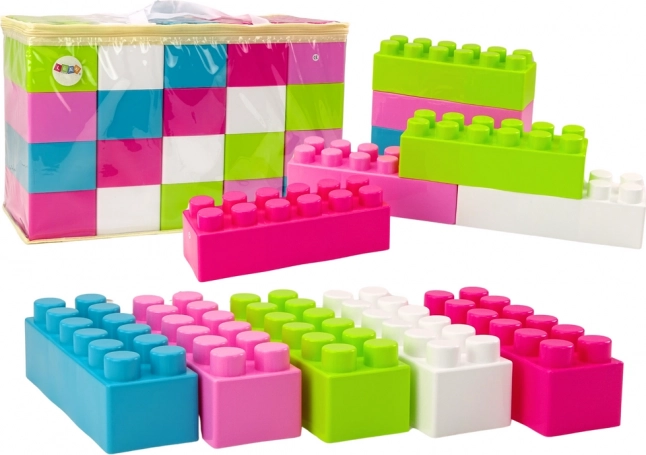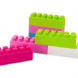 Tento barevný set velkých plastových kostek v odstínech zelené, růžové, bílé a tyrkysové je ideální pro první stavební projekty. Mimořádně velké rozměry (28 × 9 × 9 cm) zajišťují bezpečné a komfortní držení, takže děti mohou stavět věže, mosty i vlastní fantazijní stavby. Praktická přenosná taška usnadňuje ukládání i přenášení – zábava tak může cestovat s vámi.