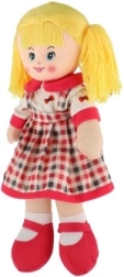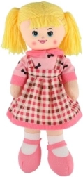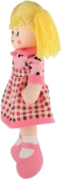 Hadrová panenka je vyrobena z jemného a bezpečného textilu, ideálního pro mazlení a hraní dětí.