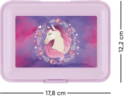 Sada obsahuje také kompletní sortiment školních potřeb, jako je penál, desky na sešity a box na svačinu. Všechny části mají koordinovaný design s motivem koně a jsou praktické pro každodenní použití.