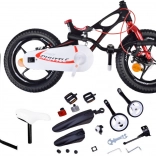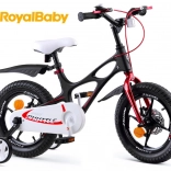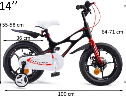 Lehký dětský bicykl RoyalBaby Space Shuttle 14" s magneziovým rámem, dvojitými kotoučovými brzdami a pomocnými kolečky je ideální pro děti 2–5 let. Nabízí plynulou a stabilní jízdu, ergonomické sezení, nastavitelná řídítka i sedlo a vodicí tyč pro bezpečné učení. Plná ochrana řetězu, odrazky a dzwonek zvyšují bezpečnost.