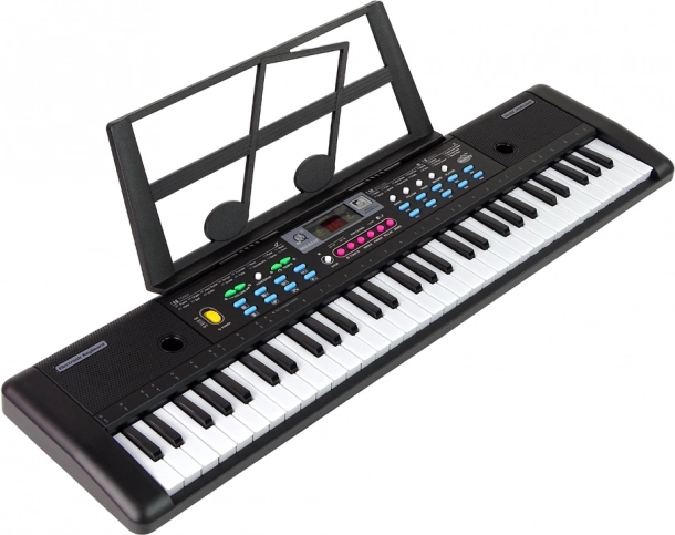 Tento lehký a přenosný keyboard pro děti je skvělou volbou pro první krůčky ve světě hudby. Měkké, snadno ovladatelné klávesy šetří zápěstí a ergonomický design zajišťuje pohodlné hraní. Díky mikrofonu si mohou malí hudebníci zazpívat své oblíbené písničky a se stojánkem na noty mají texty i noty vždy na očích.