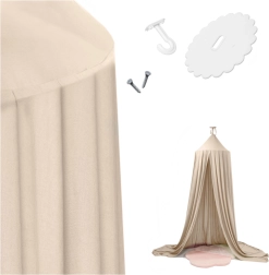 Béžový baldachýn je ideální jako klidné útočiště nad postýlkou, čtecí koutek nebo dětskou skrýš. Jemná, vzdušná látka působí elegantně a hodí se do většiny stylů zařízení dětského pokoje.