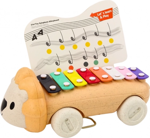 Roztomilé cymbálky ve tvaru lva na kolečkách potěší každé dítě. Nabízejí 8 barevných kláves pro první melodie, přiloženou paličku proti ztrátě a zábavné tažení na kolečkách, při kterém lev vesele poskakuje. Bezpečná hračka z šetrných materiálů podporuje rozvoj sluchu, motoriky a učení barev a tónů.