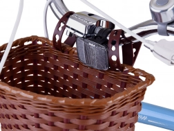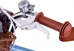 Ergonomická řídítka s gumovými gripy, zvonek a stylový košík dodávají kolu pohodlí i osobitý vzhled.