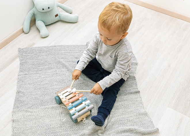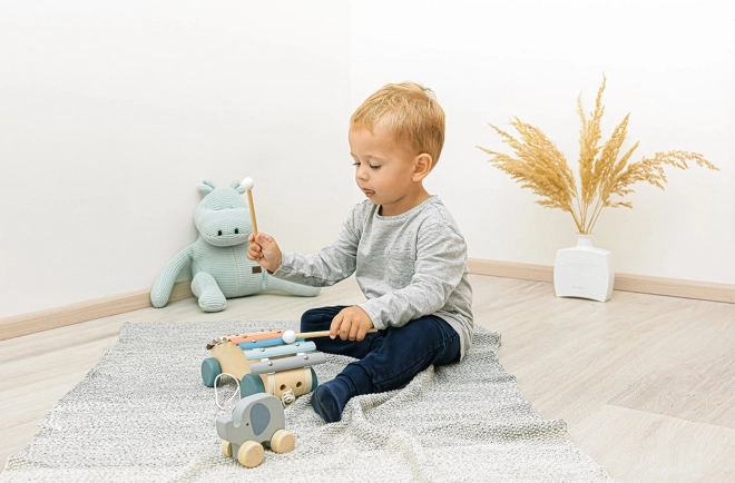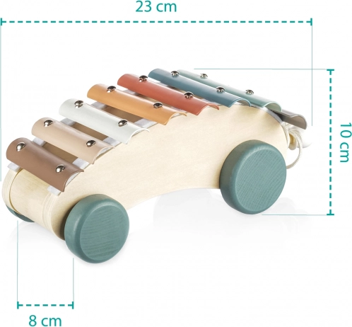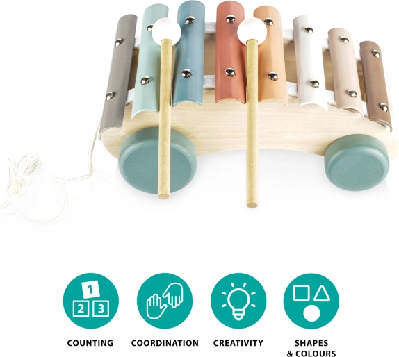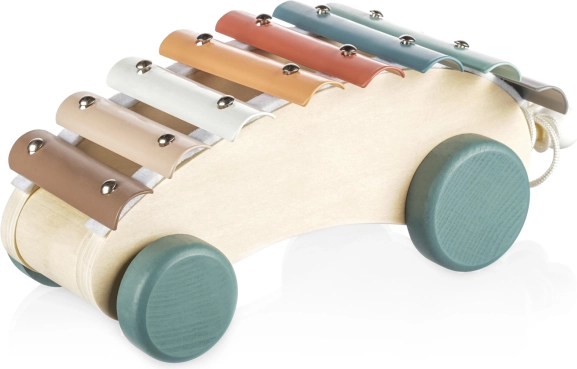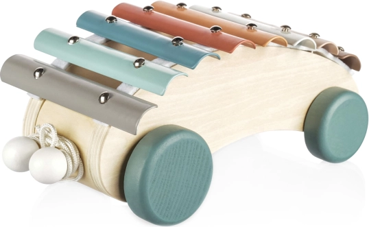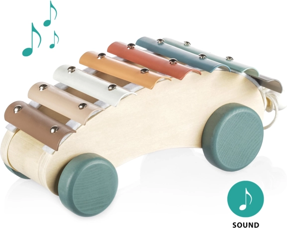 Dopřejte svým dětem zábavu a učení s dřevěným tahacím xylofonem. Tento kvalitně zpracovaný hudební nástroj pomáhá dětem porozumět hudebním rytmům a tónům a rozvíjí jejich smyslové vnímání. Díky robustním kolečkům a pevné šňůrce ho lze jednoduše tahat, což stimuluje děti k chůzi a umožňuje snadné přenášení hračky.