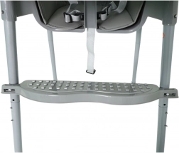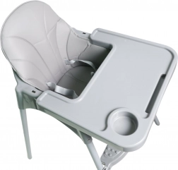 Robustní, doširoka rozkročené nohy a protiskluzová opěrka nohou zajišťují stabilitu na různých površích. Vícebodové bezpečnostní pásy udrží dítě pevně a komfortně připoutané. Hladké plastové plochy a vyjímatelný tác umožní rychlé čištění po každém jídle.