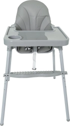 Moderní dětská jídelní židlička v šedé barvě nabízí nastavitelnou výšku, odnímatelný tác a bezpečnostní pásy pro maximální bezpečí a pohodlí. Díky stabilní konstrukci a snadno omyvatelným materiálům je ideální pro každodenní stolování i hraní.
