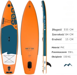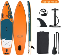 Objevte stabilní a odolný nafukovací SUP plovák BEACH DOLPHIN v oranžové barvě – kompletní set pro začátečníky i pokročilé. Díky rozměrům 335 × 86 × 15 cm nabízí výbornou stabilitu, nosnost až 150 kg a dlouhou životnost díky materiálu z hustého PVC. Součástí je vše, co potřebujete: pádlo, pumpa, batoh a opravná sada.