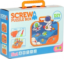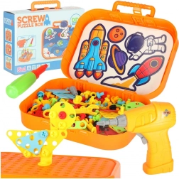 Objevte zábavnou a vzdělávací hračku pro malé konstruktéry: přenosná mozaika s elektrickou vrtačkou a šroubky. Děti si procvičí jemnou motoriku, kreativitu i logické myšlení při stavbě 2D a 3D modelů s kosmickými motivy. Kompaktní oranžový kufřík slouží jako úložný prostor i hrací plocha, takže je ideální na cesty.