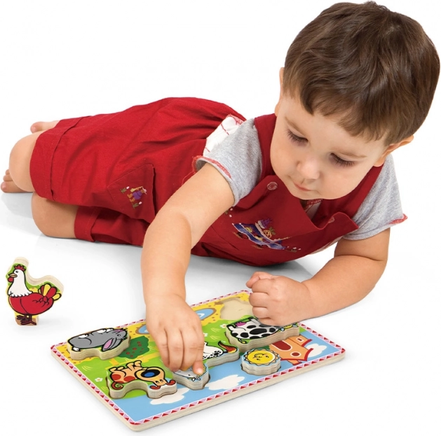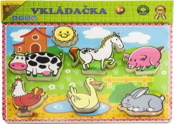 Tato vkládačka pro děti přináší zábavu i vzdělávání. Díky dřevěné podložce a rámečkům děti snadno skládají a učí se poznávat venkovská zvířátka. Každé zvířátko je vybaveno dřevěnou úchytkou pro snadnější manipulaci.
