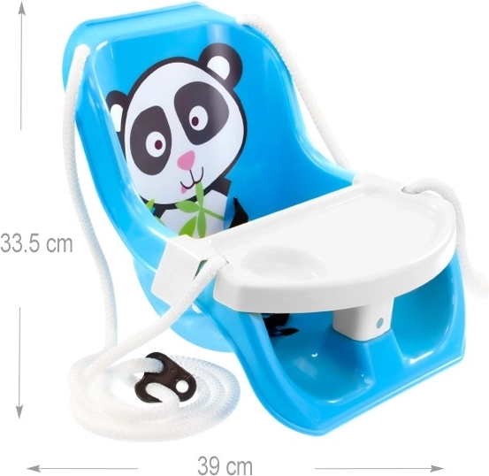 Dětská houpačka s motivem pandy, navržená pro velmi malé děti, je vybavena odnímatelným stolečkem, který zajišťuje bezpečnost dítěte a nabízí skvělou zábavu.