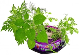 - 4 barvy, 3 balíčky se semínky (Sedmikráska, Cínie, Cosmos), 1 sáček kokosových vláken, 1 štětec, 1 květináč s miskou, 1 arch A4 s nálepkami, 1 tuba třpytek
