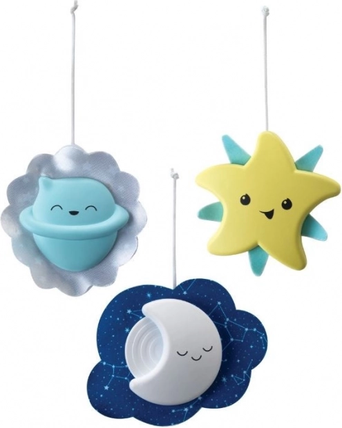- 3 režimy použití: kolotoč 0–5 měsíců, projektor/lampa na postýlku 5–18 měsíců, noční lampička na stolek od 18 měsíců.