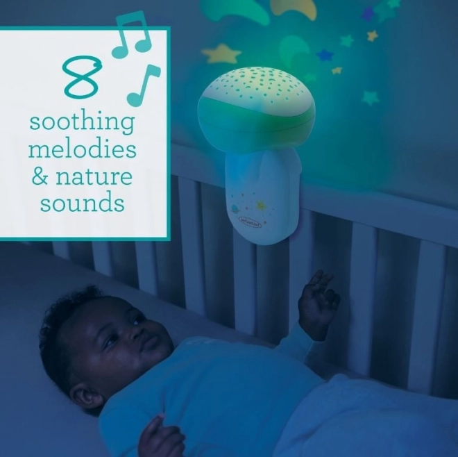 Promítá jemné hvězdičky na strop a stěny, které vytvářejí klidnou atmosféru pro snadnější usínání miminka.