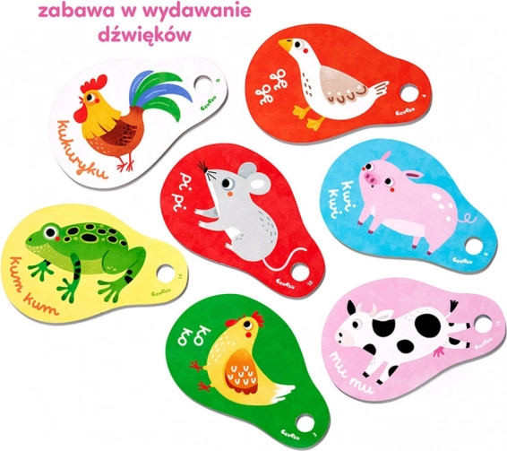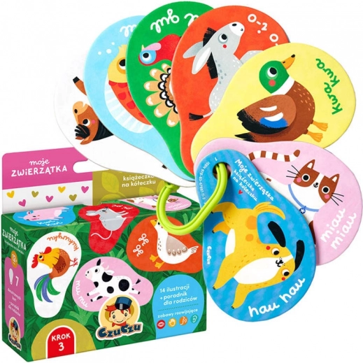 Objevujte svět zvířátek s chytrou knížkou na kroužku od CzuCzu pro děti od 12 měsíců. Krátké texty, krásné ilustrace a pevné kartičky podporují rozvoj řeči, zrakového vnímání i jemné motoriky. Praktický kroužek na zavěšení je ideální na kočárek či do postýlky.