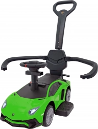 Stylové dětské odrážedlo s vodicí tyčí inspirované ikonickým modelem Lamborghini Aventador SV nabízí bezpečnou jízdu s gumovými koly, LED předními světly a zvukovými tlačítky na volantu. Lehké, stabilní a pohodlné – perfektní pro procházky i první řidičské zážitky.