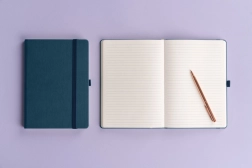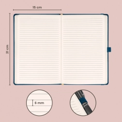 Klasický modrý linkovaný notes pro každodenní použití. Ideální na poznámky z práce nebo školy, snadno přizpůsobitelný s možností embosování firemního loga.
